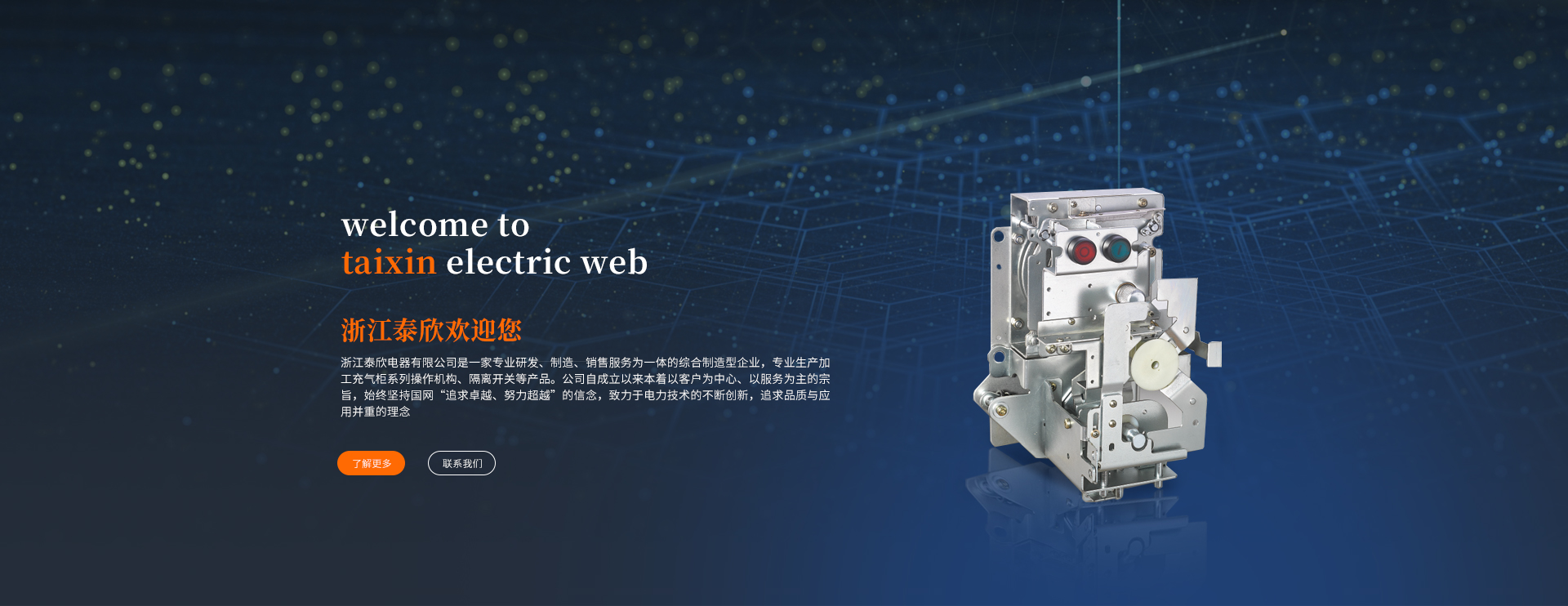 浙江泰欣電器有限公司有限公司是一家專業(yè)研發(fā)、制造、銷售服務(wù)為一體的綜合制造型企業(yè),專業(yè)生產(chǎn)加工充氣柜系列操作機(jī)構(gòu)、隔離開關(guān)等
